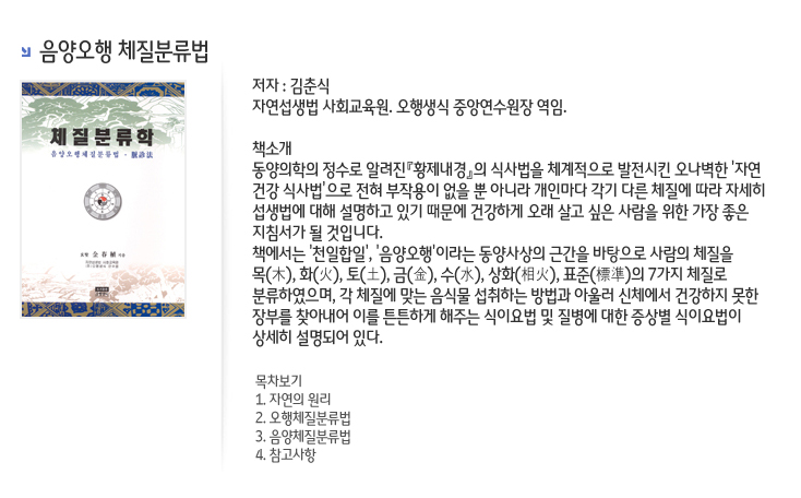 회사명 : 자연섭생 오행생식요법학회 / 대표 : 최인수 / 주소 : 대전광역시 서구 대덕대로233번길 28 국제빌딩 502호 / 개인정보관리책임자 : 최인수 사업자 등록번호 : 314-04-11364 / 전화 : 070–7010-7755 / 팩스 : 02-581-4552